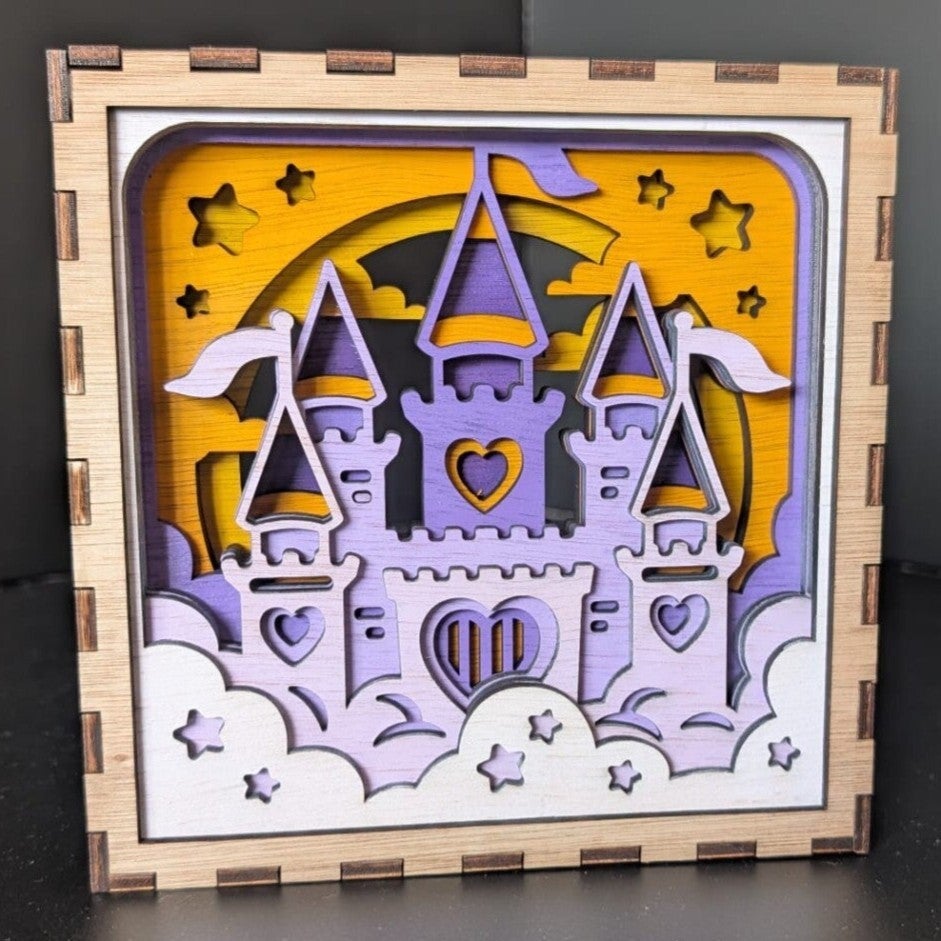 Leuke 3d Artbox met prinsessenkasteel, opgebouwd uit 9 lagen hout