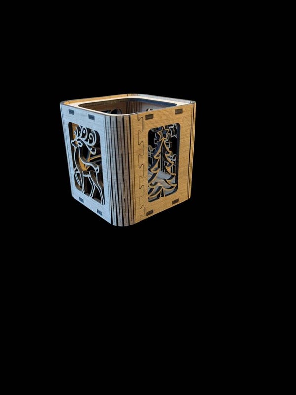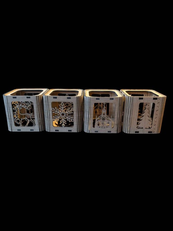 Mooie houten waxinelichthouders speciale kerstuitvoering.