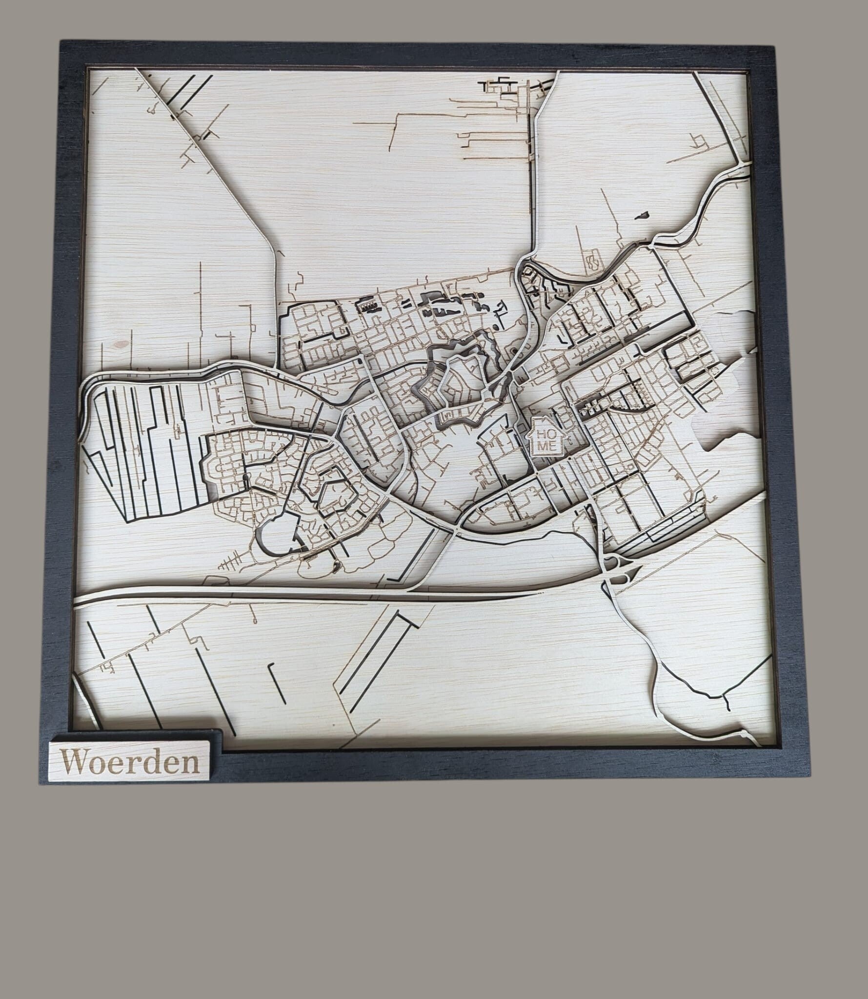 Ontdek de unieke houten Citymap van Beamzz. Een prachtige, laser gesneden plattegrond van jouw favoriete stad om aan de muur te hangen. Elke Citymap wordt geleverd met een speciale pin, zodat je precies kunt markeren waar jouw huis, je favoriete plek of een dierbare herinnering zich bevindt. Het is meer dan een decoratie; het is een stukje van jouw verhaal.